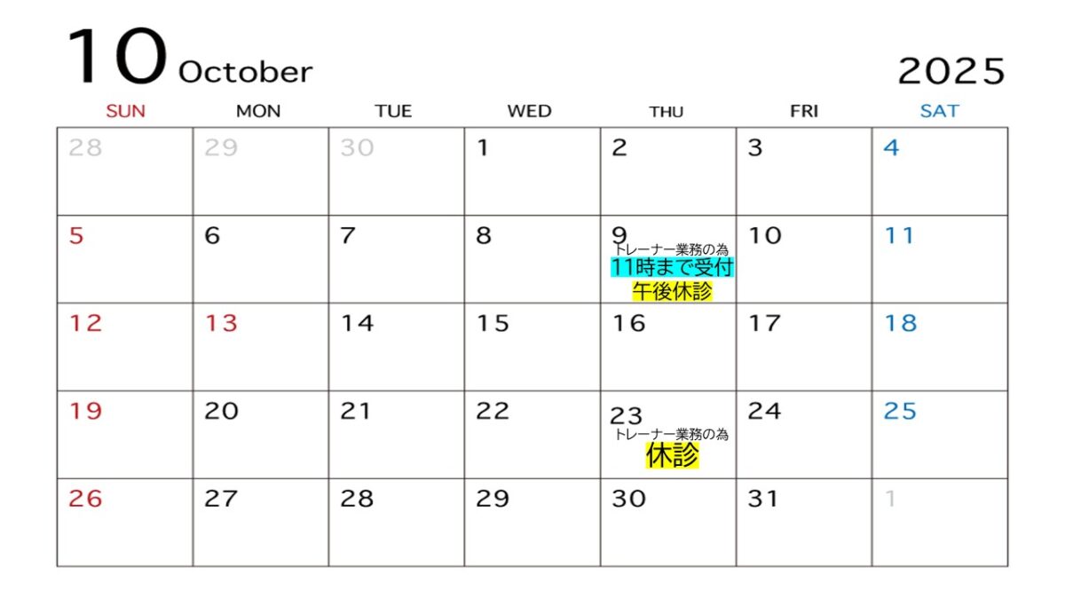 9日(木)は午前11時まで、午後休診